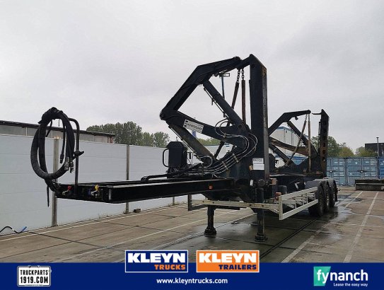 Number of axles: 3, Loading Capacity: 36160 kg, Own weight: 8840 kg, Gross vehicle weight: 45000 kg, Chassis type: Complete chassis, Chassis material: steel, Kingpin size: 2 inch, Suspension type: full air suspension, ABS, EBS, Matr. year superstructure: 2008, Axle make: SAF, Crane, CONTAINER SIDE LOADER 2X 20 1X 40