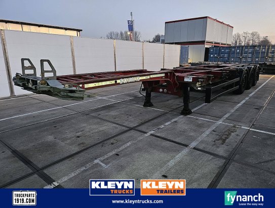 Number of axles: 3, Own weight: 5600 kg, Gross vehicle weight: 39000 kg, Chassis type: Complete chassis, Chassis material: steel, Kingpin size: 2 inch, Suspension type: full air suspension, ABS, EBS, Matr. year superstructure: 2012, Twistlocks: 2x20 + 1x30 + 1x40 + 1x45 high cube, Extendable chassis: Front / Rear, Axle make: SCHMITZ